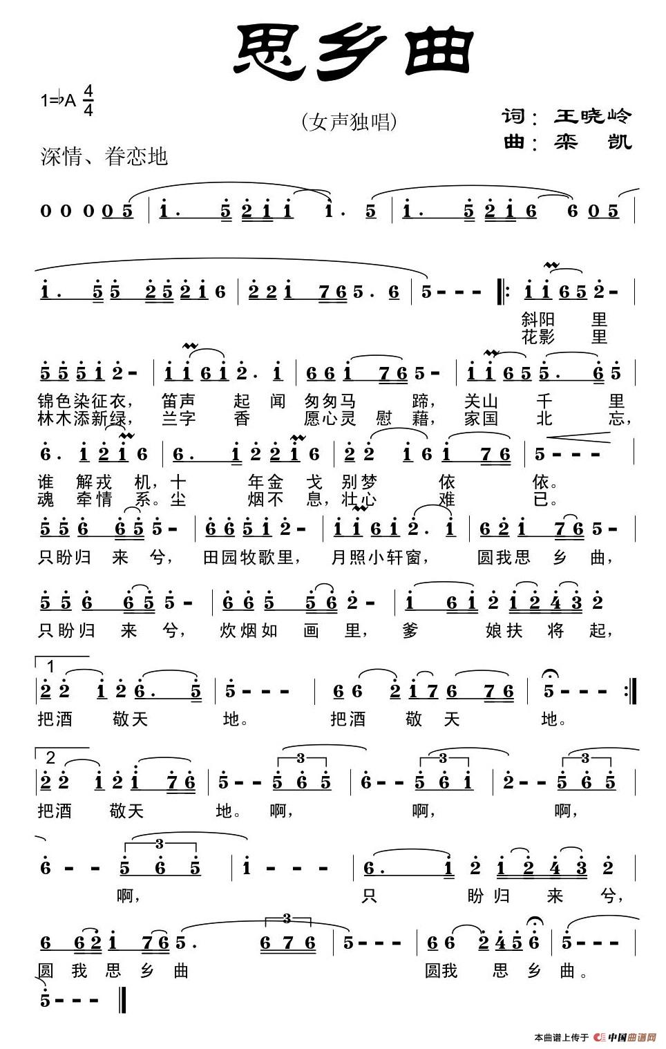 《思乡曲》为2013洛阳中国牡丹节开幕式大型演出第二幕交响音画《木兰辞》的主题歌,描写花木兰十年金戈、戎马征战,斜阳里当看到大雁飞过,不由得想起久别的亲人和故土,一时间感慨万千,无限的眷恋和思乡之情涌上心头。演唱有若干版本,此为吴娜演唱版,其它版本也很精彩会陆续挂出。