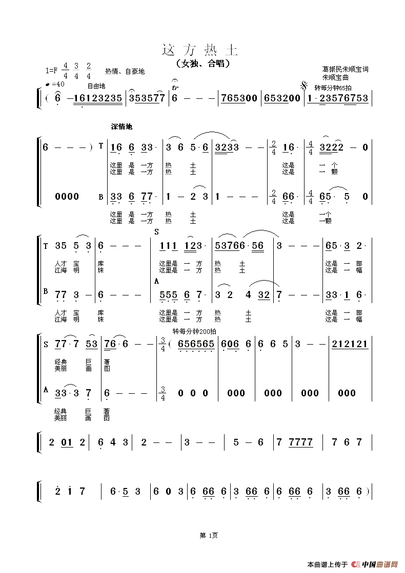 这方热土(女独、合唱)(葛振民 朱顺宝词 朱顺宝曲)