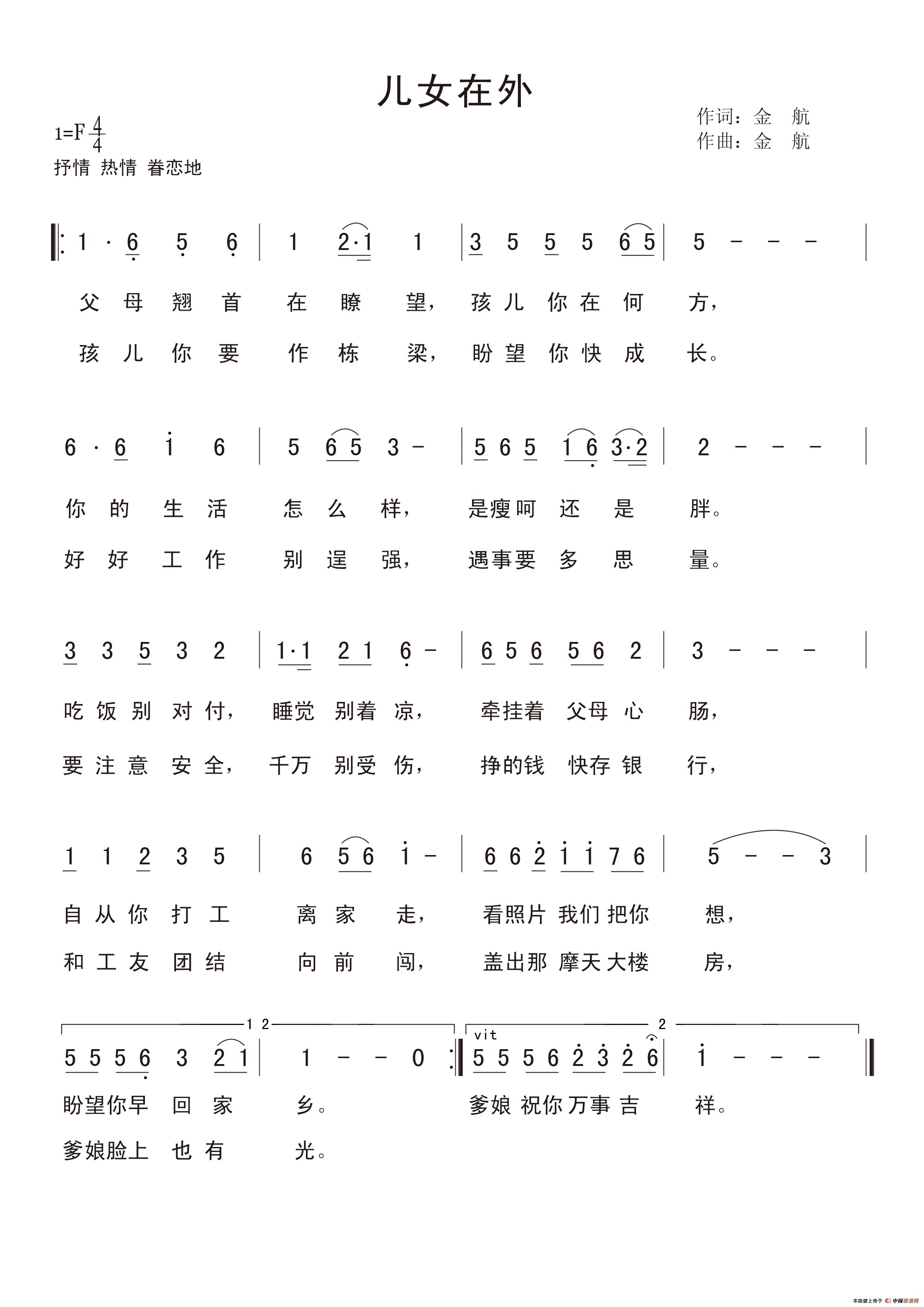 关于《儿女在外》曲谱的评论