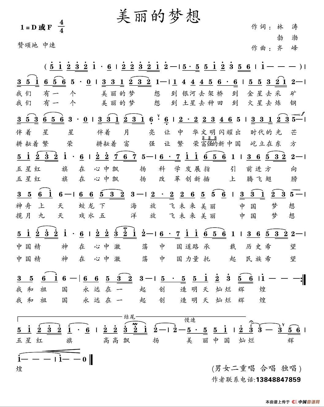美丽的梦想(林涛 勃渤词 齐峰曲)