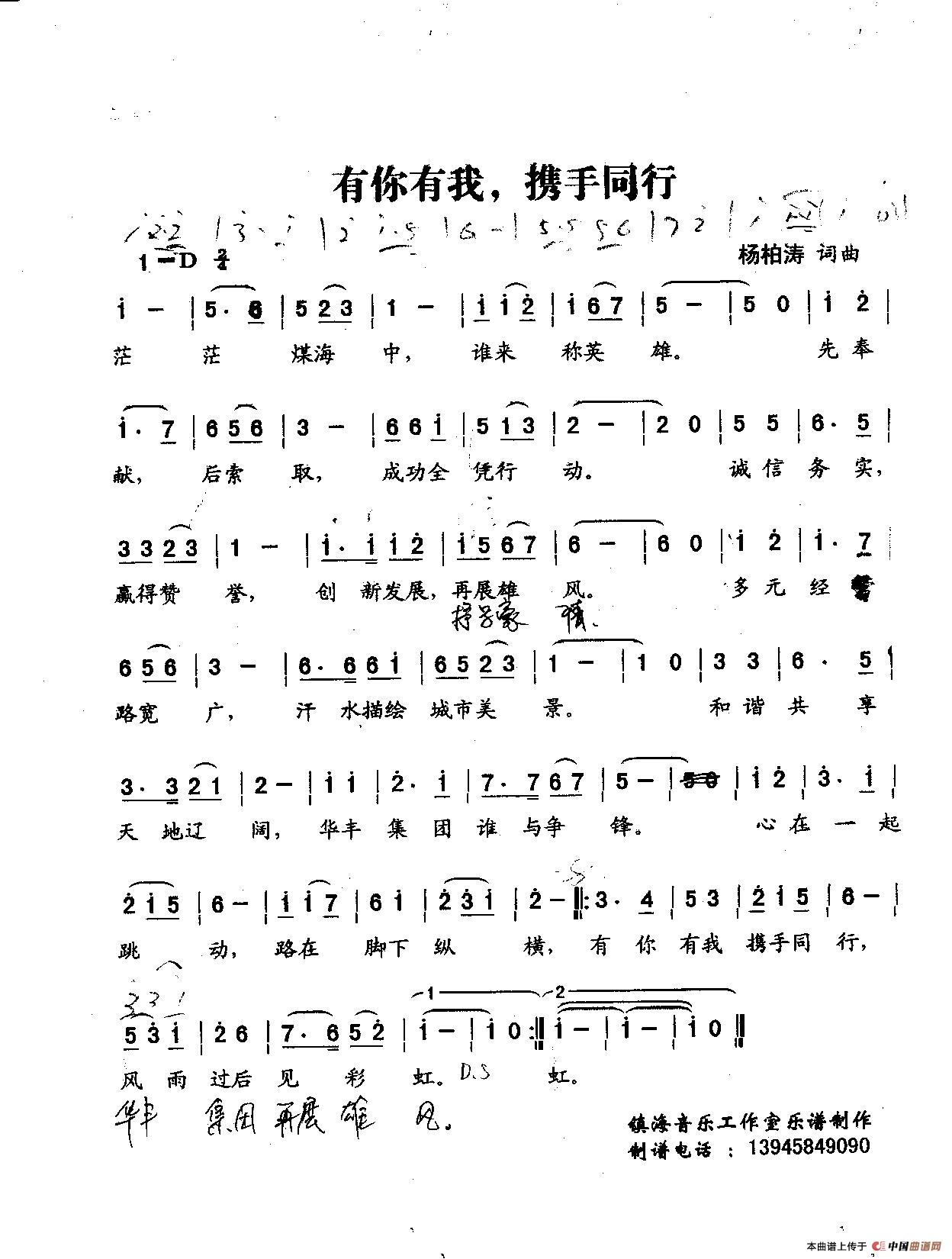 关于《有你有我、携手同行》曲谱的评论
