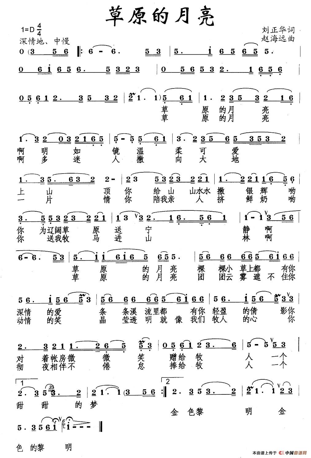 赵海远曲 刘正华词著名蒙古族歌唱家、内蒙古音乐家协会主席 阿拉泰演唱。此作曾获全国广播新歌征歌银奖。赵海远首张歌曲作品专辑《草原的月亮》主打歌曲,2004年由中国音乐家音像出版社出版发行。