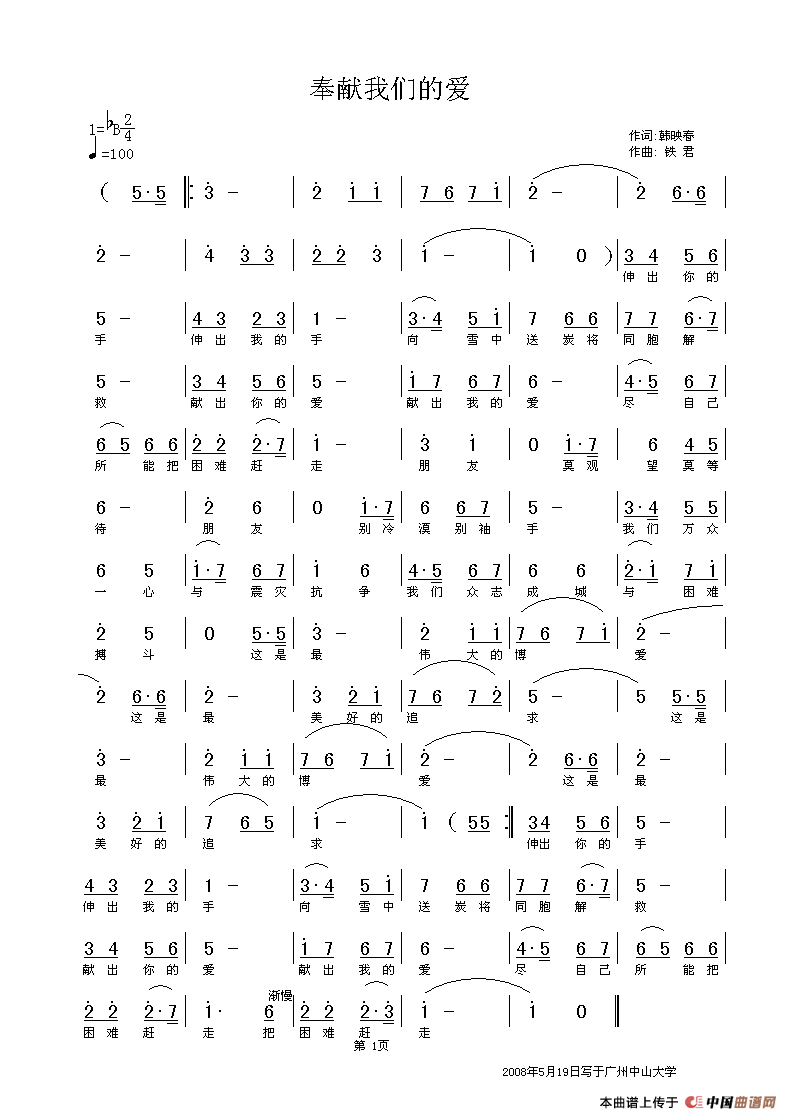 在曲谱图片上单击右键,选择"图片另存为..."即可将曲谱保存到您的电脑中,打印时候可将图片插入到WORD中,调整合适大小打印即可。