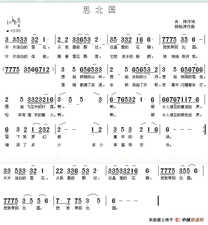 《思北国(肖纬词 杨柏涛曲)》文本歌词