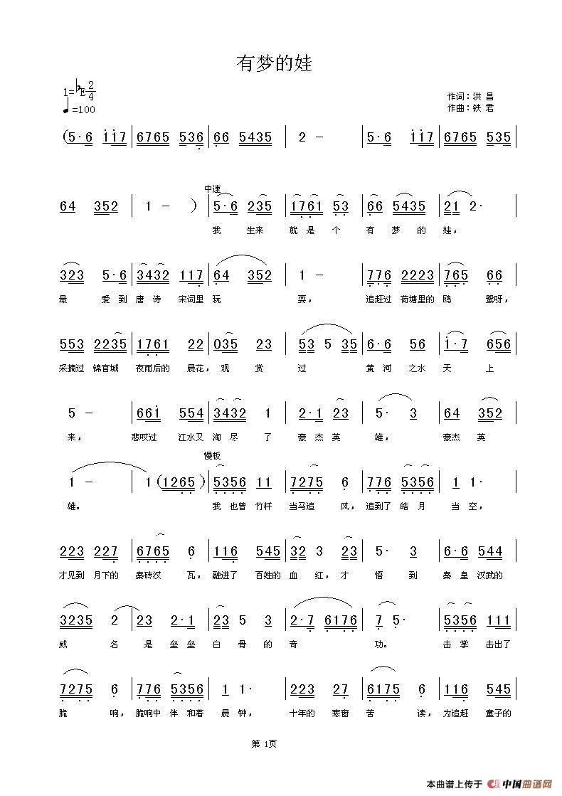 有梦的娃(洪昌词 铁君曲)