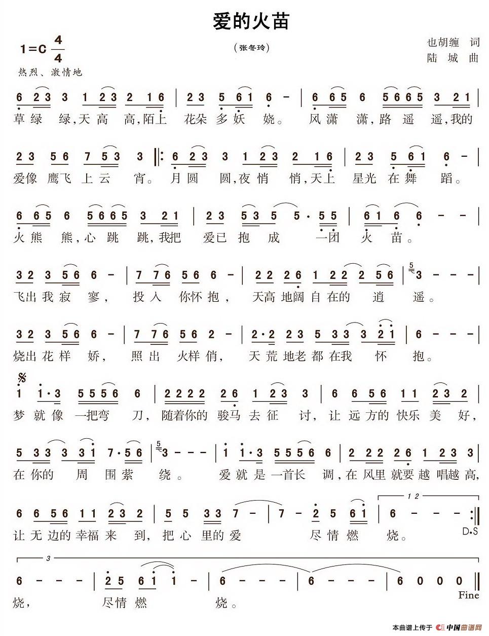 《爱的火苗》文本歌词