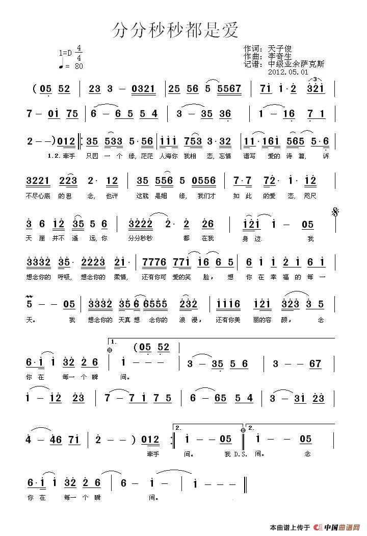 提示:在曲谱图片上单击右键,选择"图片另存为..."即可将曲谱保存到您的电脑中,打印时候可将图片插入到WORD中,调整合适大小打印即可。