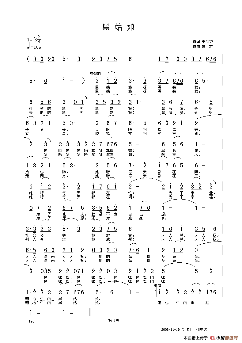 黑姑娘(王剑钟词 铁君曲)(1)_原文件名:黑姑娘 编.gif