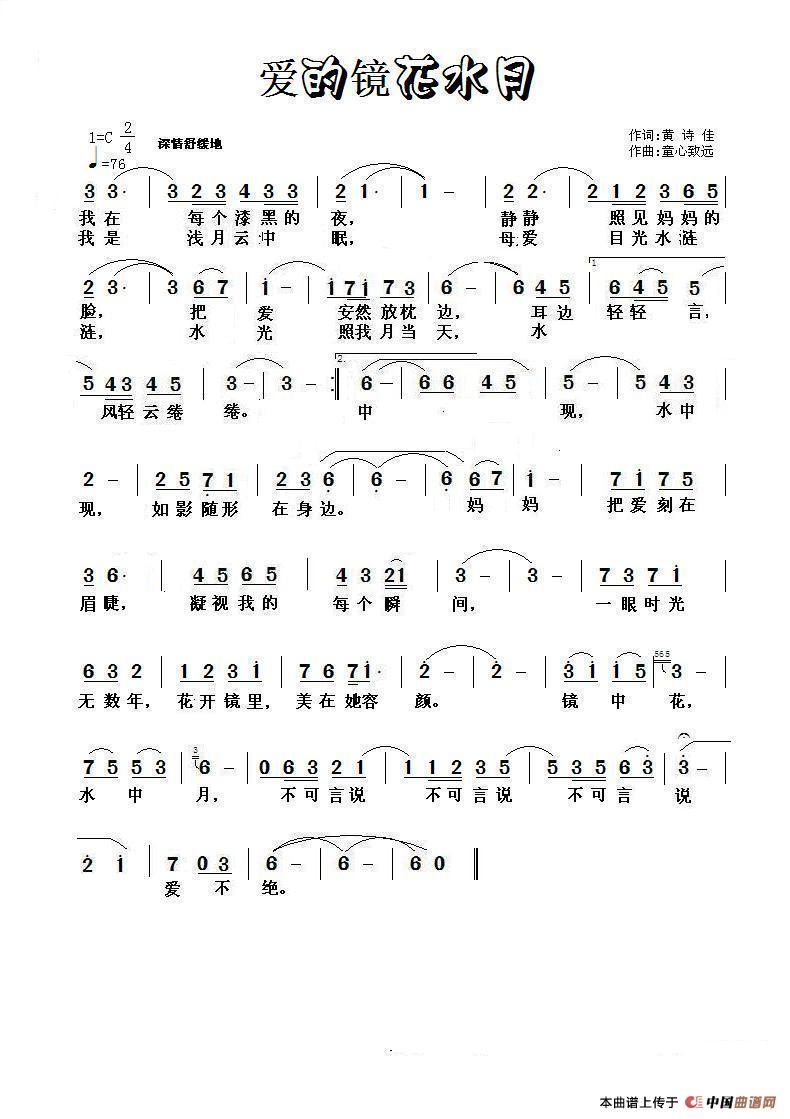 作词:黄诗佳   作曲:童心致远   演唱(奏):黄诗佳   来源:原创   上传:童心致远   日期:2013-08-27   浏览次数: