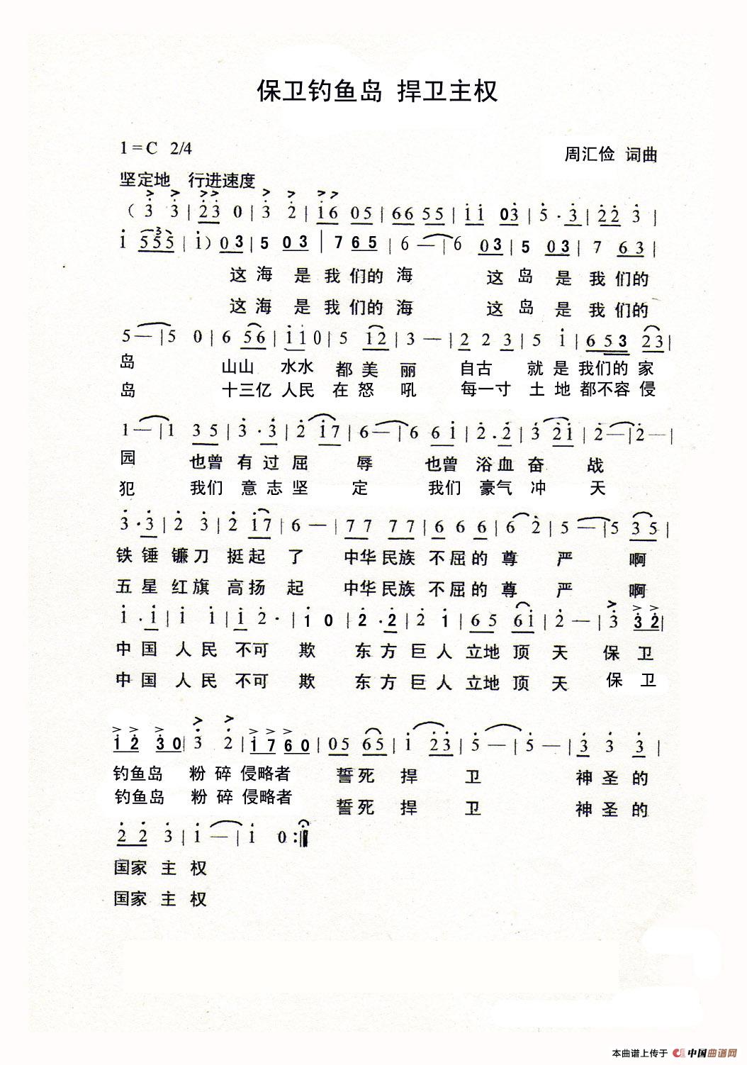 关于《保卫钓鱼岛,捍卫主权》曲谱的评论