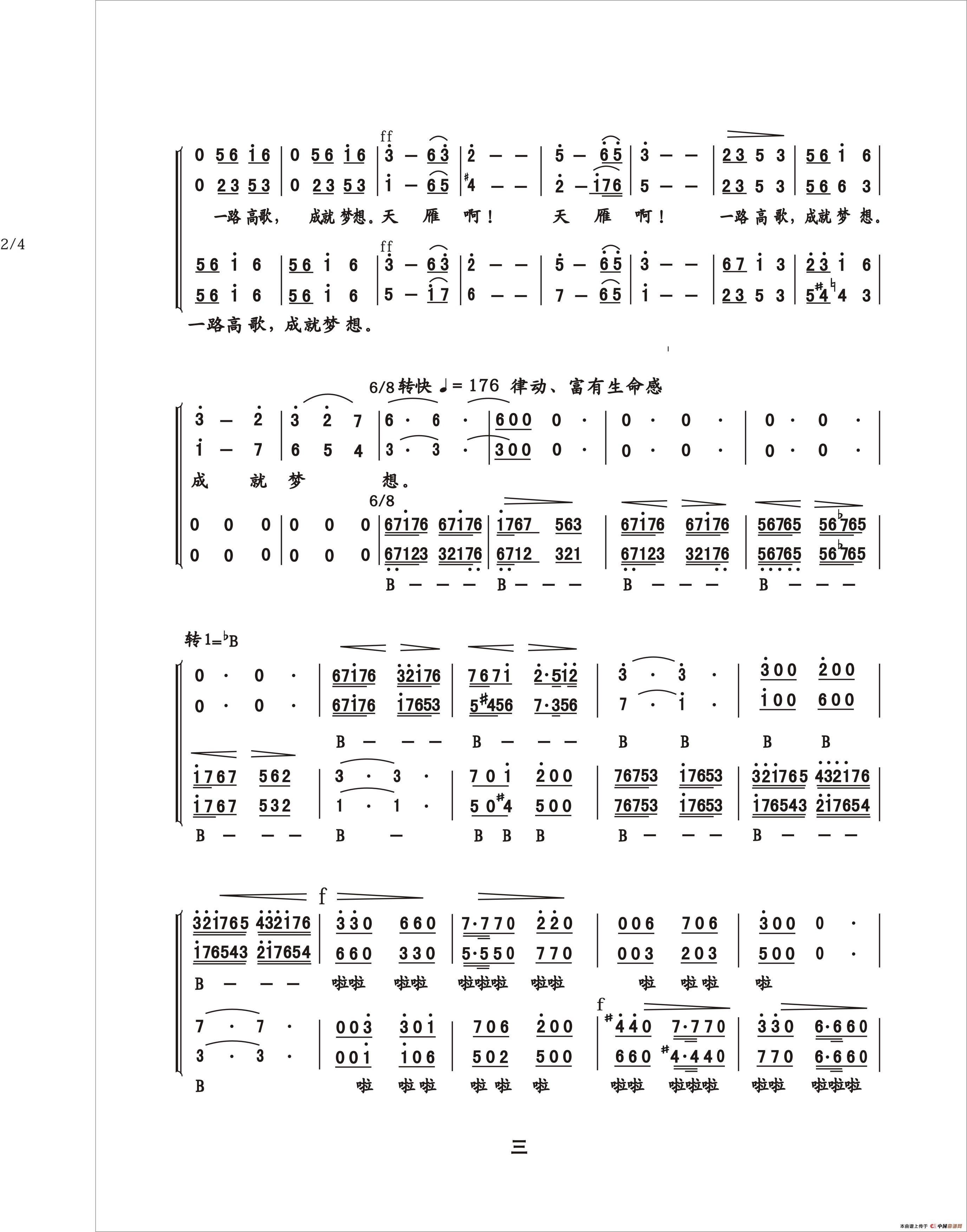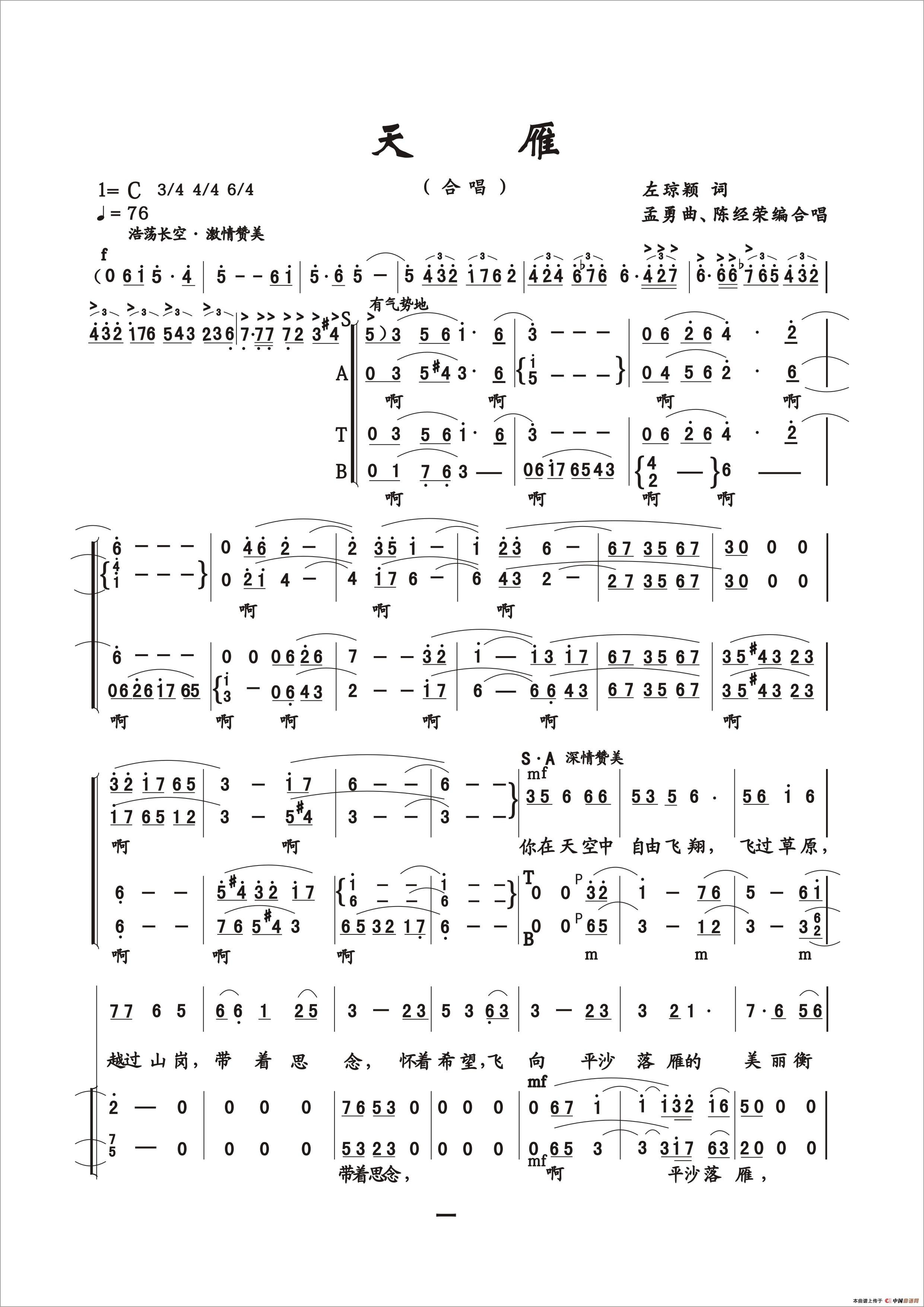 提示:在曲谱图片上单击右键,选择"图片另存为..."即可将曲谱保存到您的电脑中,打印时候可将图片插入到WORD中,调整合适大小打印即可。
