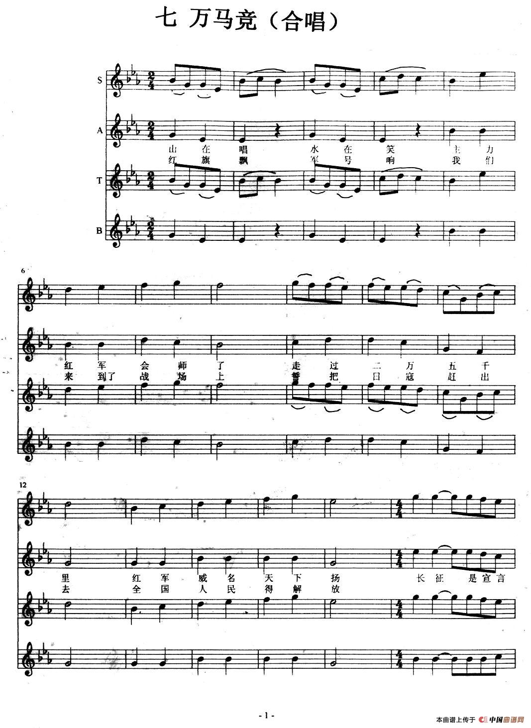 提示:在曲谱图片上单击右键,选择"图片另存为..."即可将曲谱保存到您的电脑中,打印时候可将图片插入到WORD中,调整合适大小打印即可。