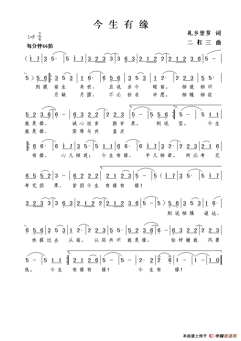 关于《今生有缘》曲谱的评论
