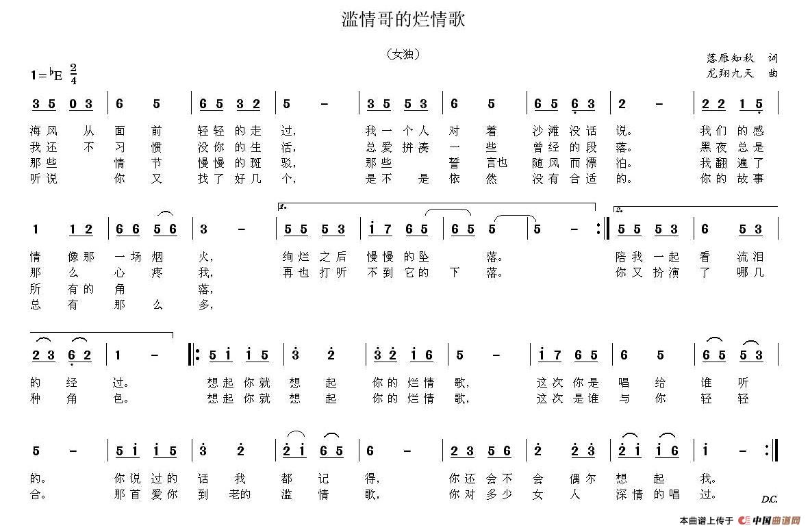 关于《滥情哥的烂情歌》曲谱的评论