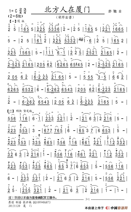 在厦门,无论你走到哪儿都能遇见北方人,特别是东北人。此曲描述了生活在厦门的北方人。欢迎爱好者以本曲为基准,编配其它器乐谱。