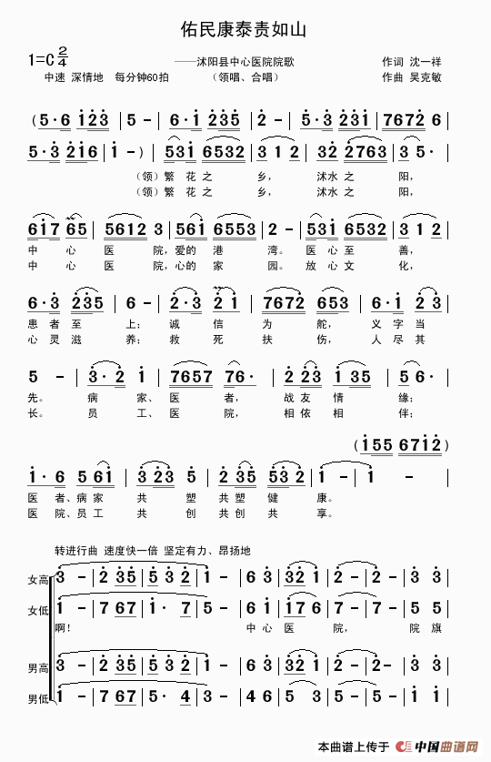 佑民康泰责如山(沈一祥词 吴克敏曲)