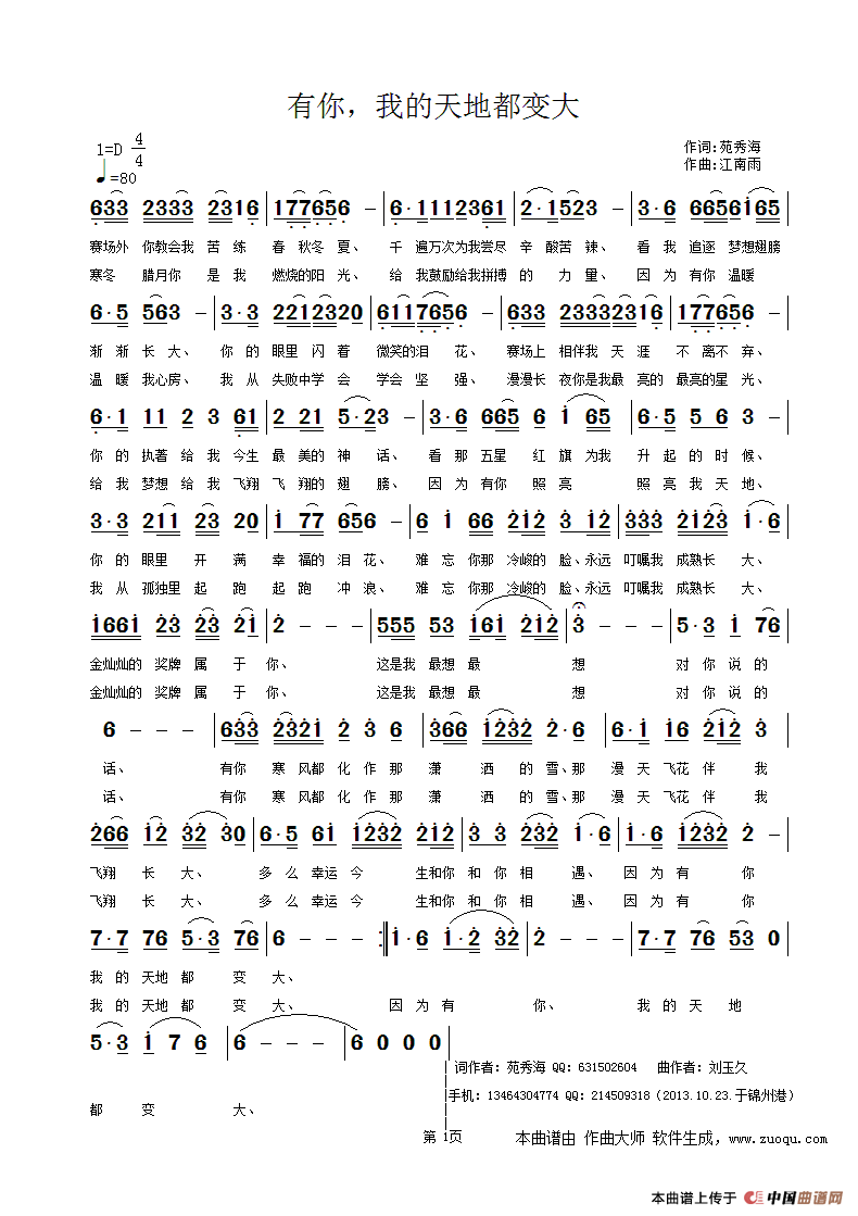 江南雨原创曲谱专栏