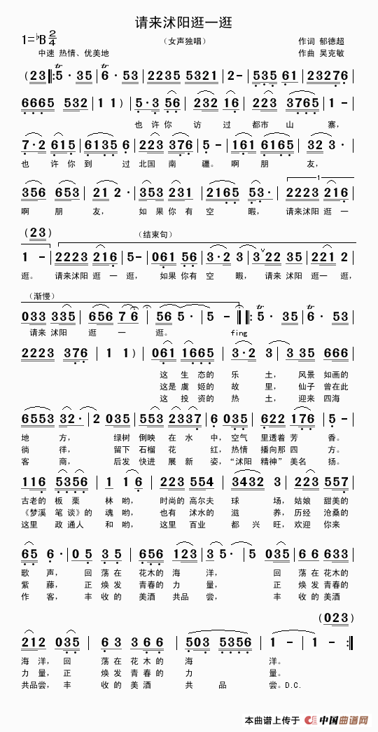 关于《请来沭阳逛一逛(郁德超词 吴克敏曲)》曲谱的评论