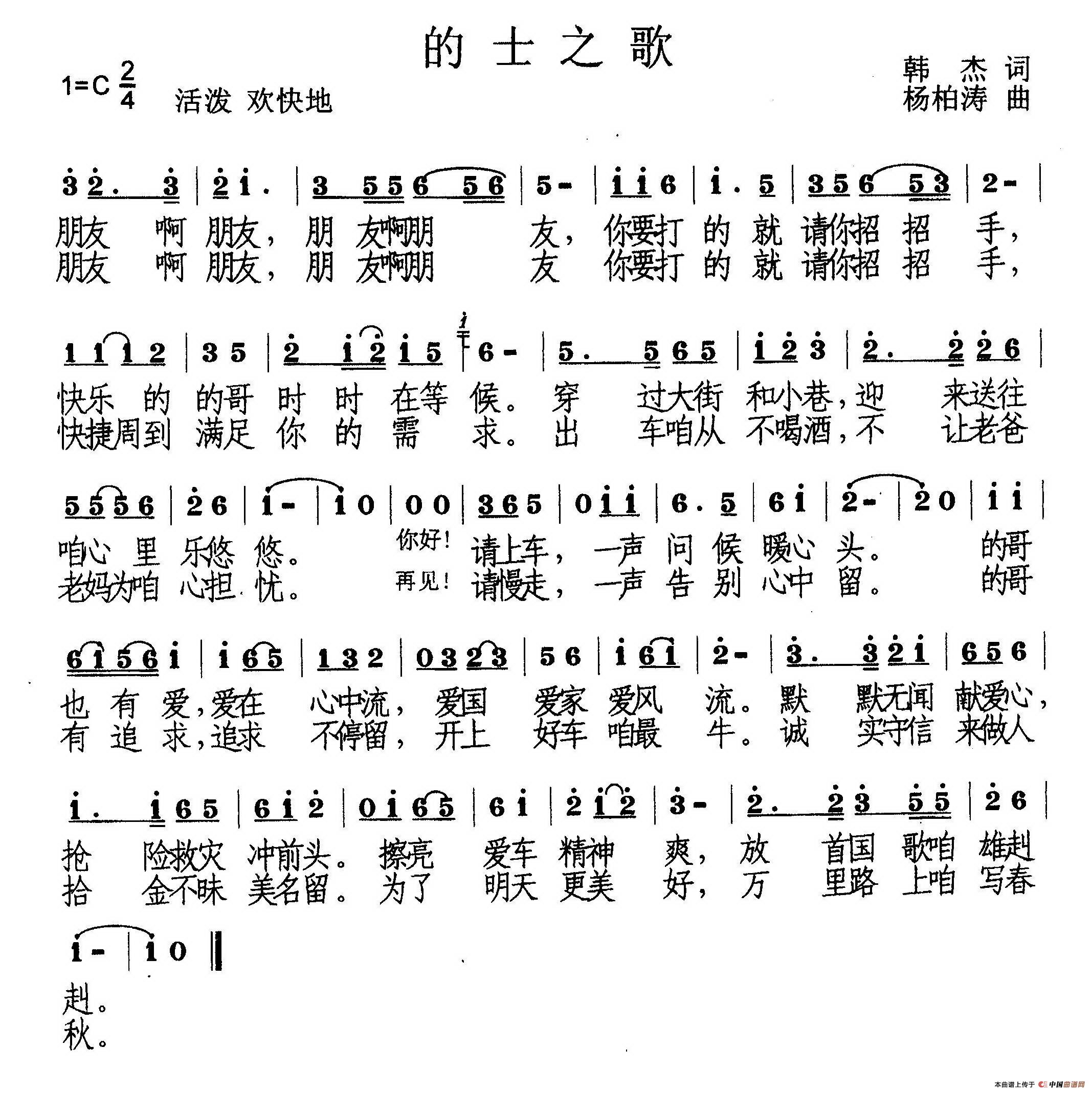 关于《的士之歌》曲谱的评论