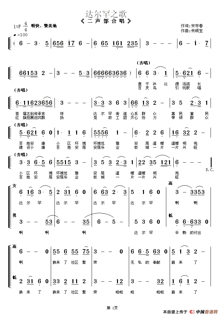 达尔罕之歌(二声部合唱)